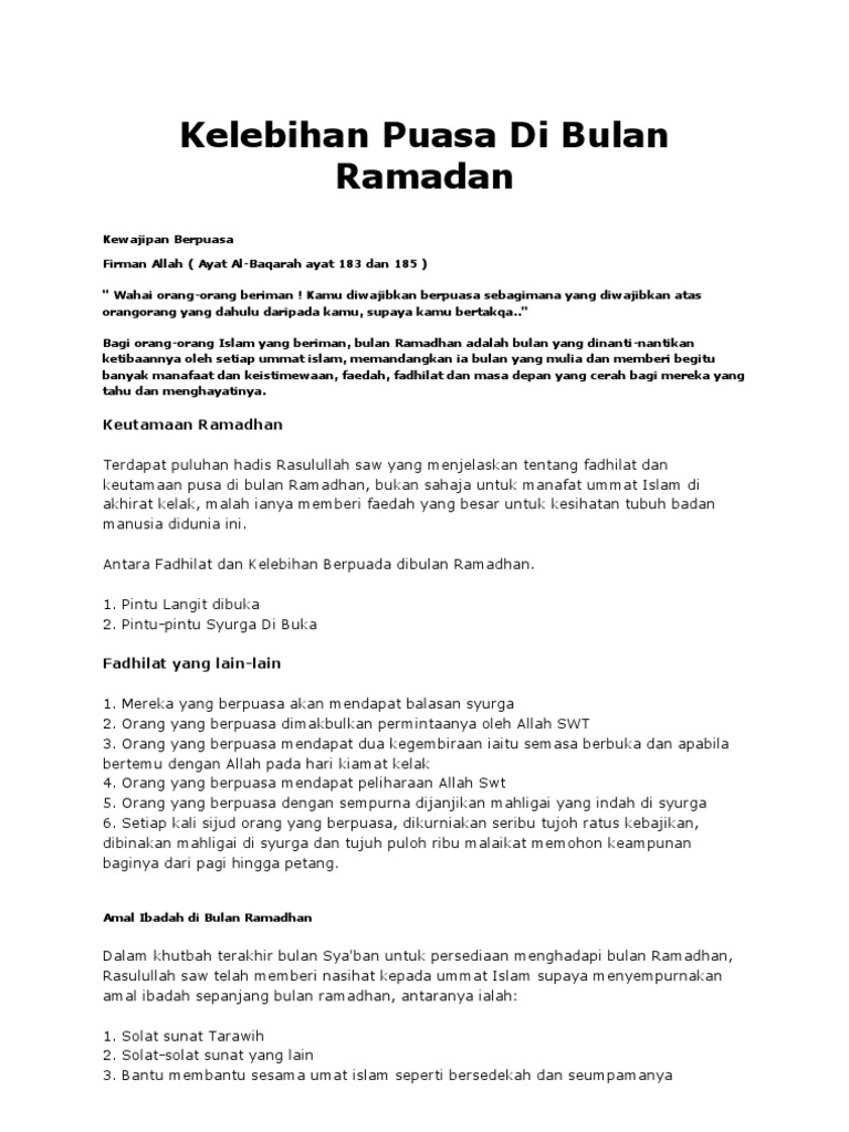 Kelebihan Puasa Di Bulan Ramadan Pdf
